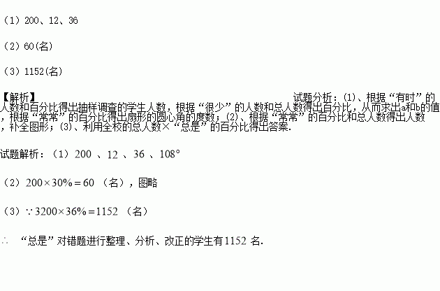 Ä³Ð£Ëæ»ú³éÈ¡²¿·ÖѧÉú£¬¾Í¡°Ñ§Ï°Ï°¹ß¡±½øÐе÷²é£¬½«¡°¶Ô×Ô¼º×ö´íÌâ½øÐÐÕûÀí¡¢·ÖÎö¡¢¸ÄÕý¡±£¨Ñ¡ÏîΪ£ººÜÉÙ¡¢ÓÐʱ¡¢³£³£¡¢×ÜÊÇ£©µÄµ÷²éÊý¾Ý½øÐÐÁËÕûÀí£¬»æÖƳɲ¿·Öͳ¼ÆÍ¼ÈçÏ£º