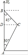分析 先过点C作CD⊥AB,垂足为点D,设BD=x海里,得出AD=(200-x)海里,在Rt△BCD中,根据tan45°=$\frac{CD}{BD}$,求出CD,再根据BD=CD求出BD,在Rt△BCD中,根据cos45°=$\frac{BD}{BC}$,求出BC,从而得出答案.