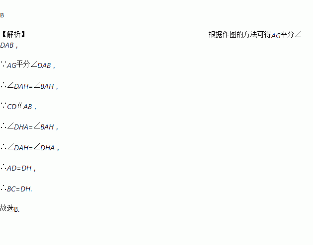 A. DH=BC B. CH=DH C. AG平分∠DAB D. AD=DH