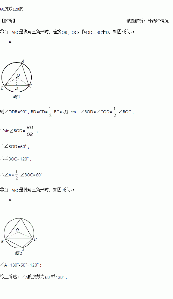 如图,⊙O的直径BD=6,∠A=60°,则BC的长度为( )