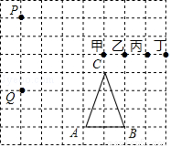 如图,若A、B、C、P、Q、甲、乙、丙、丁都是方格纸中的格点,为使ABC∽△PQR,则点R应是甲、乙、丙、丁四点中的( )