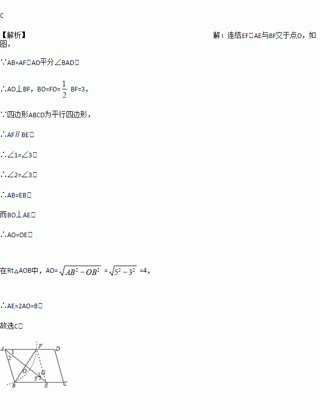 如图,在?ABCD中,用直尺和圆规作∠BAD的平分线AG交BC于点E.若BF=6,AB=5,则AE的长为( )