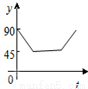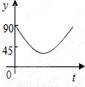 的路线做匀速运动,设运动的时间为t秒,∠APB的度数为y度,则下列图象中表示y(度)与t(秒)之间函数关系最恰当的是( ).
