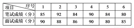 某单位招聘员工,采取笔试与面试相结合的方式进行,两项成绩的原始分满分均为100分,前六名选手的得分如下: