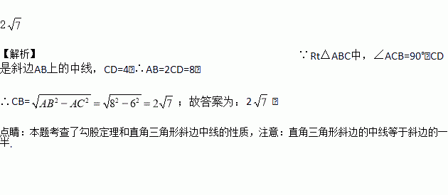 如图,在一张矩形纸片ABCD中,AD=4cm,点E,F分别是CD和AB的中点.现将这张纸片折叠,使点B落在EF上的点G处,折痕为AH.若HG的延长线恰好经过点D,则CD的长为( )