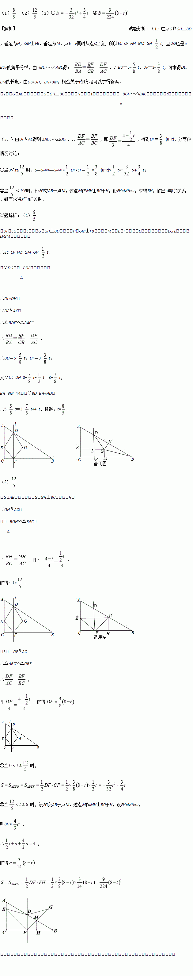 £¨3£©Éè¡÷DFGÓë¡÷DFBÖØºÏ²¿·ÖµÄÃæ»ýΪScm2£¬ ÇóSÓëtÖ®¼äµÄº¯Êý¹ØÏµÊ½£¬²¢Ð´³ötµÄȡֵ·¶Î§£®