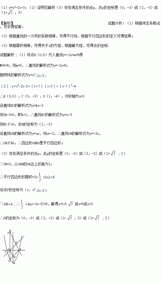 (3)在抛物线上是否存在点P,使△APB的面积等于平行四边形OHBG的面积,若存在,直接写出P点的坐标,若不存在请说明理由.