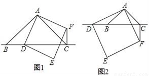 (2)数学思考:如图(2),当点D在线段CB的延长线上时,上述①、②中的结论是否仍然成立?若成立,请给予证明,若不成立,请你写出正确结论再给予证明.