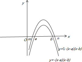 分析:由函数y=-(x-a)(x-b)与x轴的交点坐标的横坐标为a与b与二次函数y=1-(x-a)(x-b)相当于y=-(x-a)(x-b)向上平移一个单位,可以画函数,由函数图象即可求得答案.
