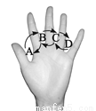 图为手的示意图,在各个手指间标记字母 A,B,C,D.请你按图中箭头所指方向(即 A→B→C→D→C→B→A→B→C → … 的方式)从 A 开始数连续的正整数 1,2,3,4,…,当数到