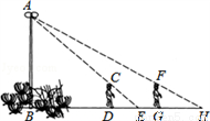 如图,花丛中有一路灯杆AB,在灯光下,大华在D点处的影长DE=3米,沿BD方向行走到达G点,DG=5米,这时大华的影长GH=5米.如果大华的身高为2米,求路灯杆AB的高度.