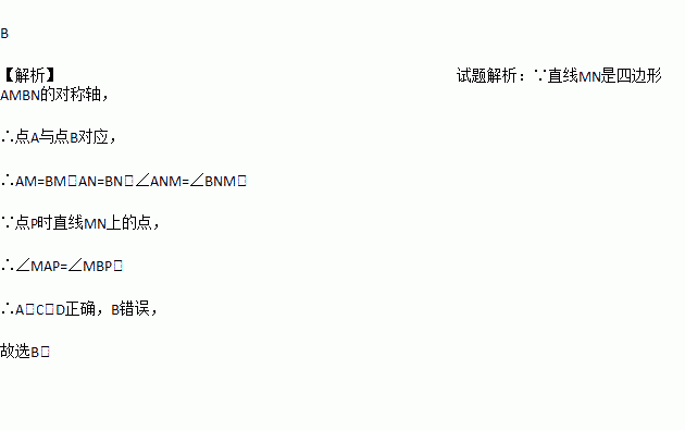 如图,直线MN是四边形AMBN的对称轴,点P是直线MN上的点,下列判断错误的是( )