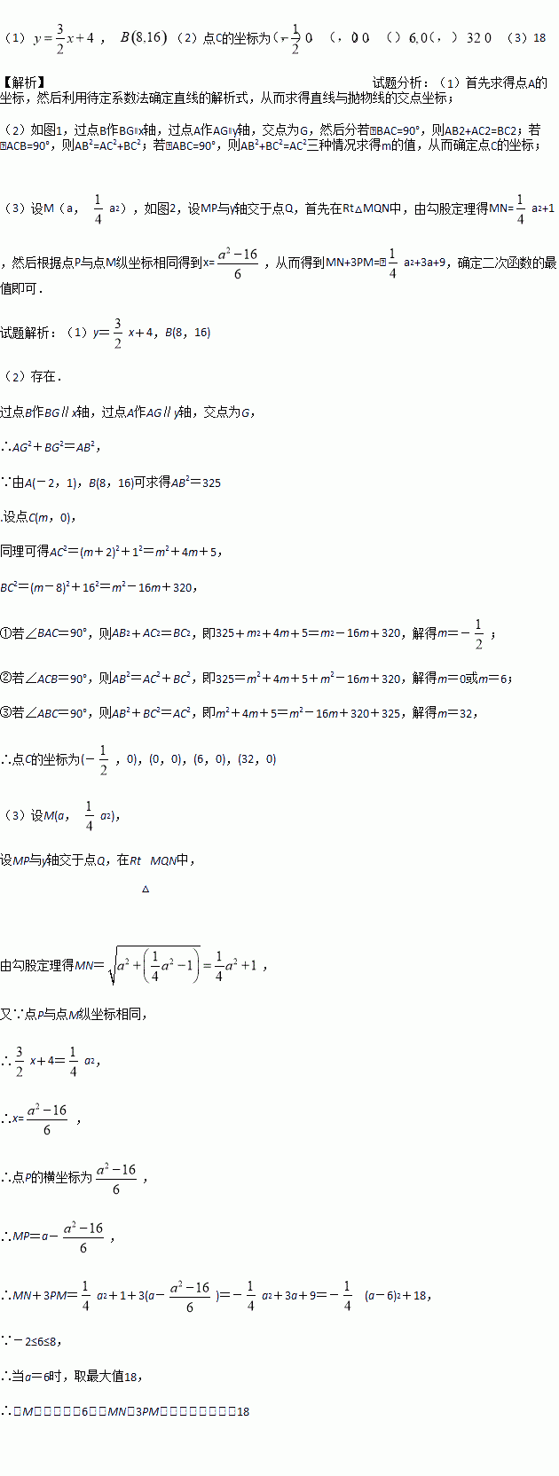 (3)过线段AB上一点P,作PM∥x轴,交抛物线于点M,点M在第一象限,点N(0,1),当点M的横坐标为何值时,MN+3MP的长度最大?最大值是多少?