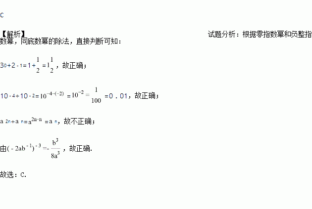 科目:初中数学 来源:苏科版七年级数学 下册 第8章 幂的运算 同步练习 题型:单选题
