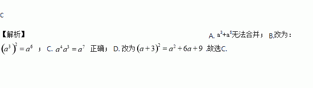 A. a4+a2=a6 B. (x-y)2=x2-y2 C. x6÷x2=x3 D. (ab)2=a2b2