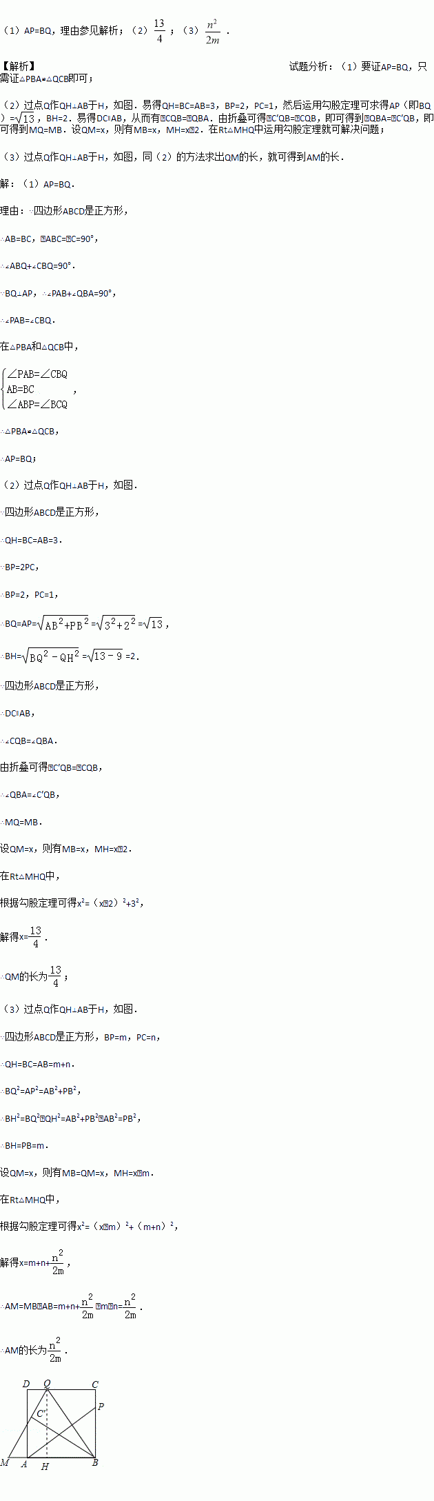 (3)当BP=m,PC=n时,求AM的长.