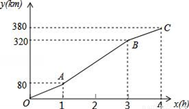 暑假期间,小刚一家乘车去离家380公里的某景区旅游,他们离家的距离y(km)与汽车行驶时间x(h)之间的函数图象如图所示.