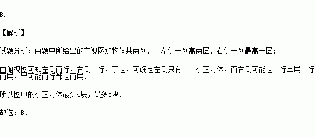 一个几何体是由一些大小相同的小立方块摆成的,其主视图和俯视图如图所示,则组成这个几何体的小立方块最少有( )