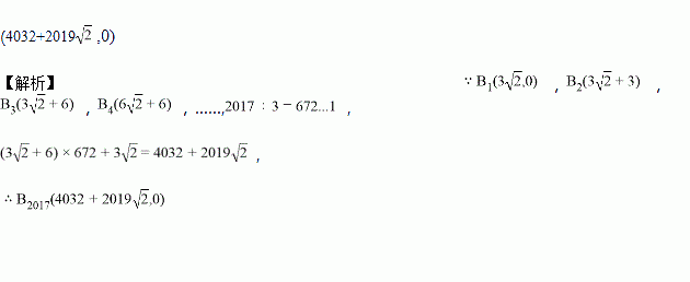 如图:在直角坐标系中,等腰直角三角形OAB的直角边为3厘米,三角形绕B1点旋转,A点落在B2点上,在绕B2点旋转O点落在B3点上,如此下去,B2017的坐标为___