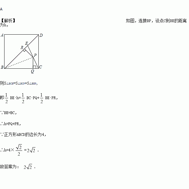 如图,E是边长为4的正方形ABCD的对角线BD上一点,且BE=BC,P为CE上任意一点,PQ⊥BC于点Q,PR⊥BR于点R,则PQ+PR的值是( )