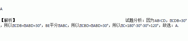 如图,直线AB∥CD,BE平分∠ABC,交CD于点D, ∠CDB=30°,那么∠C的度数为