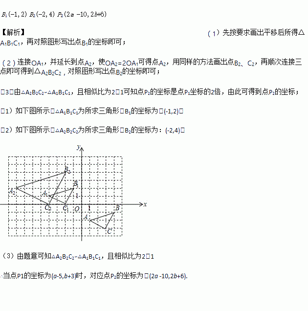 (3)若△A1B1C1内部任意一点P1 的坐标为(a-5,b+3),直接写出经过(2)的变化后点P1的对应点P2的坐标(用含a、b的代数式表示).P2的坐标是____________.