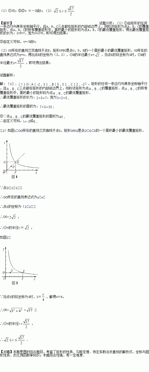 的图像上一点,⊙P是点O,D,E的一个面积最小的最优覆盖矩形的外接圆,求出⊙P的半径r的取值范围.