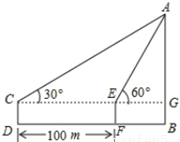 如图,为了测量某栋大楼的高度AB,在D处用高为1米的测角仪CD测得大楼顶端A的仰角为30°,向大楼方向前进100米到达F处,又测得大楼顶端A的仰角为60°,则这栋大楼的高度AB(单位:米)为( )