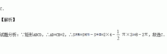 如图,在矩形ABCD中,AB=4,AD=2,分别以A、C为圆心,AD、CB为半径画弧,交AB于点E,交CD于点F,则图中阴影部分的面积是( )
