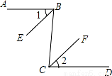 已知:如图,AB∥CD,BE平分∠ABC,CF平分∠BCD.求证:∠1=∠2