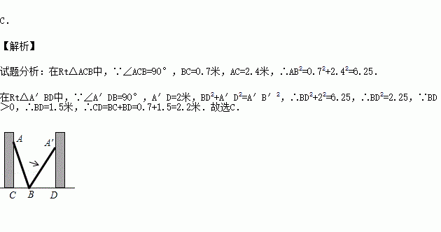 A.0.7米 B.1.5米 C.2.2米 D.2.4米
