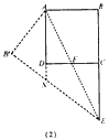 | (2)①如图(1),当点E在边BC上时,延长AB'交DC于点M, ∵AB∥CF, ∴△ABE∽△FCE, ∴ ∵ ∵AB∥CF,∴∠BAE=∠F, 又∠BAE=∠B'AE,∴∠B'AE=∠F,∴MA=MF, 设MA=MF=kcm,则MC=k-3,DM=9-k 在Rt△ADM中,由勾股定理,得k2=(9一k)2+62,解得k=MA= ∴DM= ②如图(2),当点E在BC延长线上时,延长AD交B'E于点N 同①可得NA=NE, 设NA=NE=mcm,则B'N=12-m, 在Rt△AB'N中,由勾股定理,得m2=(12-m)2+62,解得m=AN= ∴sin∠DAB'=B'N/AN= |