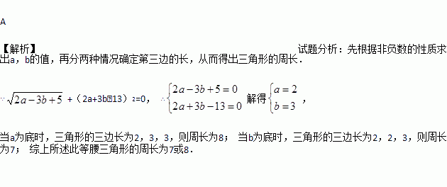 +(2a+3b-13)2=0,则此等腰三角形的周长为( )