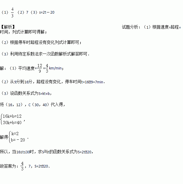 如图是某汽车行驶的路程s(km)与时间t(分钟) 的函数关系图。观察图中所提供的信息,解答下列问题: