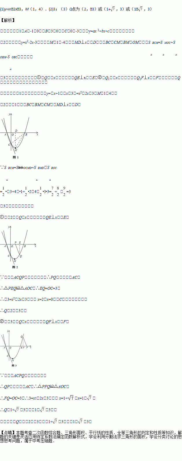 (3)若P是x轴上一个动点,过P作射线PQ∥AC交抛物线于点Q,随着P点的运动,在抛物线上是否存在这样的点Q,使以A,P,Q,C为点的四边形为平行四边形?若存,请求出Q点坐标;若不存在,请说明理由.