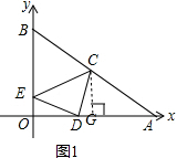 (2)①△CDE为等腰直角三角形;如图1,过点C作CG⊥OA于G,证明△EOD≌△DGC(SAS),得到ED=DC,∠EDO=∠DCG,又∠DCG+∠CDG=90°,∠EDO+∠CDG=90°,所以△CDE为等腰直角三角形;
