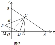 ②首先证明△CDF为等腰直角三角形,过点F作FM⊥x轴于点M,过点C作CN⊥x轴于点N,连接OF,证明△FMD≌△DNC(AAS),得到FM=DN,DM=CN,再证明FM=OM,ON=CN,再根据S△AOB=$\frac{1}{2}$OA×OB=$\frac{1}{2}$OA×CN+$\frac{1}{2}$OB×ON=24,解得ON=$\frac{24}{7}$,即可解答.