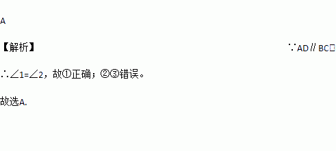 如图所示,如果AD//BC,则:①∠1 =∠2;②∠3 =∠4;③∠1+∠3 =∠2+∠4;上述结论中一定正确的是( )