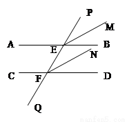 (7分)已知:如图, AB∥CD,EM平分∠PEB,FN平分∠EFD,判断EM与FN的位置关系,并说明理由。