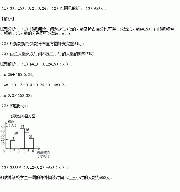 名学生,请根据上述调查结果,估算该校学生一周的课外阅读时间不足三小时的人数.