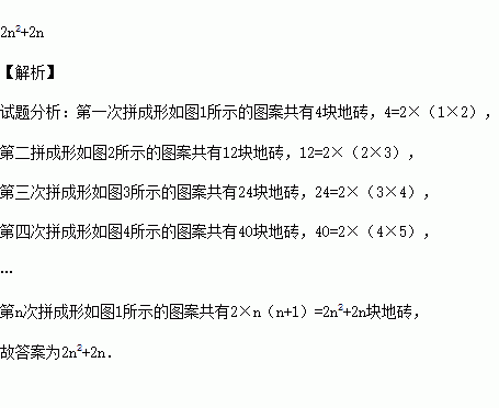 某广场用同一种如图所示的地砖拼图案.第一次拼成形如图1所示的图案,第二次拼成形如图2所示的图案,第三次拼成形如图3的图案,第四次拼成形如图4的图案……按照只有的规律进行下去,第