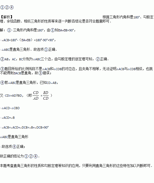 ①∠A+∠B=90°;②