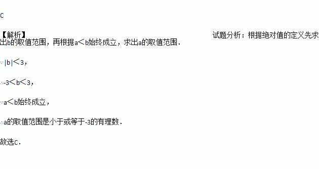 实数b满|b|<3,并且有实数a,a<b恒成立,a的取值范围是( )