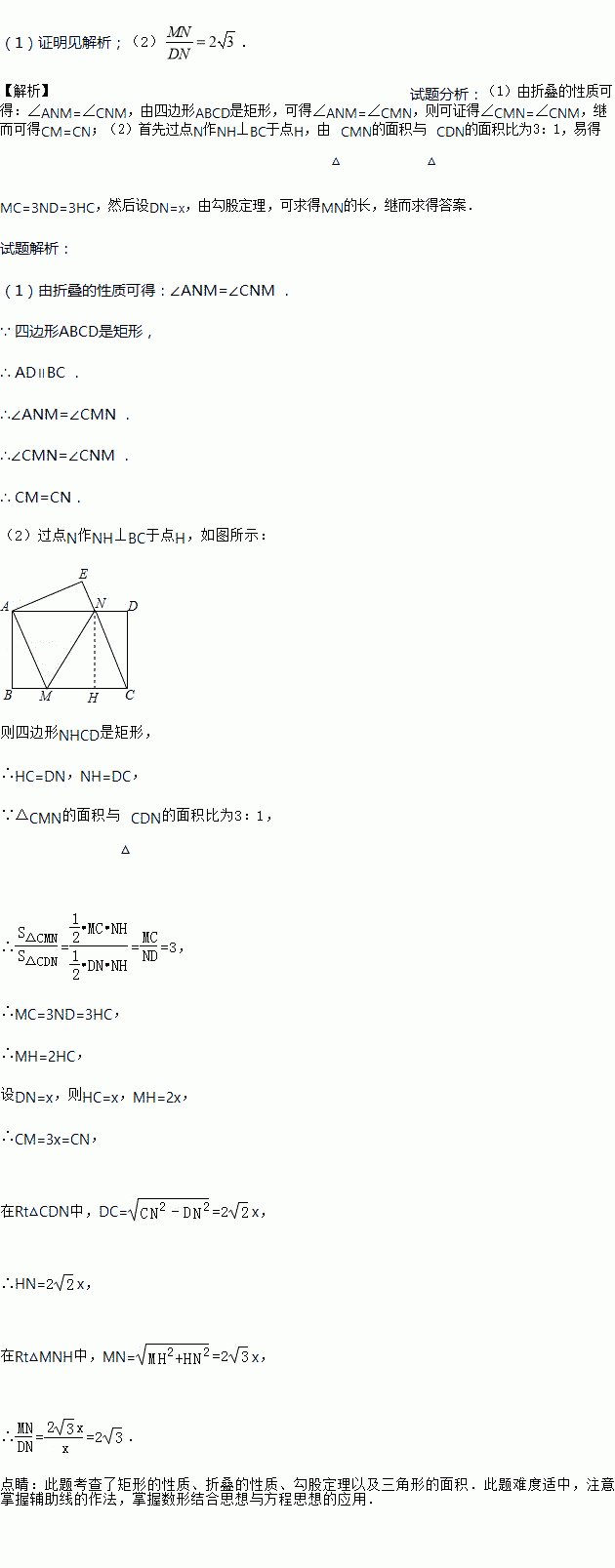 (2)若△CMN的面积与△CDN的面积比为3:1,求
