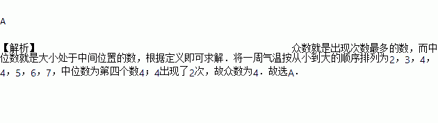 2015年1月份,无锡市某周的日最低气温统计如下表,则这七天中日最低气温的众数和中位数分别是( )