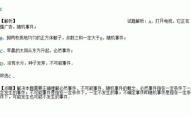 B. 掷两枚质地均匀的正方体骰子,点数之和一定大于6