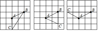 6.已知下面是3个5×5的正方形网格,小正方形边长都为1,A、B两点在小网格的顶点上,位置如图所示.现请你分别在三个网格中各画一个△ABC.要求:(1)顶点C在网格的顶点上;(2)工具只用无刻度的直尺;(3)所画的3个三角形互不全等,但面积都为2.