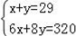 表格中捐款6元和8元的人数不小心被墨水污染已看不清楚.若设捐款6元的有x名同学,捐款8元的有y名同学,根据题意,可得方程组( )