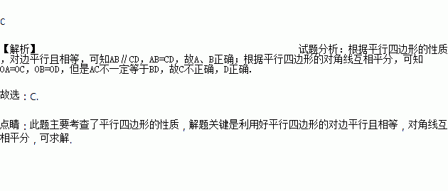 A. AB∥CD B. AB=CD C. AC=BD D. OA=OC