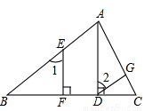 (9分)已知:如图,AD⊥BC,EF⊥BC ,∠1=∠2.求证:DG∥AB.